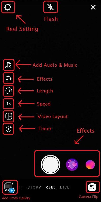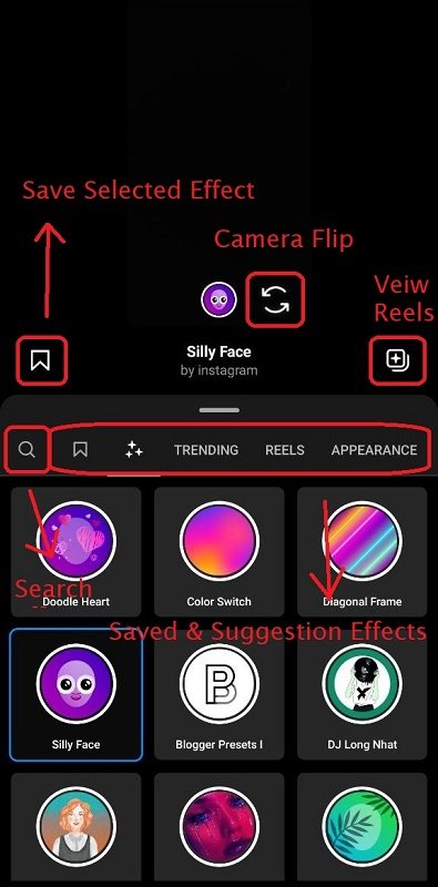 یکی دیگر از ابزارهای مهم ریلز اینستاگرام افکتهایی است که جلوههای زیبایی و بصری دارند و میتوان با استفاده از سرچ باکس و یا پیشنهادیهای خود اینستاگرام افکت موردنظر را انتخاب کرد . برخی از افکتهای اینستاگرام دارای موسیقی است پس هنگام استفاده از این افکتها نیاز به موسیقی ندارید . با استفاده از Veiw Reels میتوانید ویدیوهای ساختهشده با یک افکت خاصی را مشاهده کنید و میزان محبوبیت هر افکت را از طریق تعداد ریلز های ساختهشده با آن افکت را بسنجید .