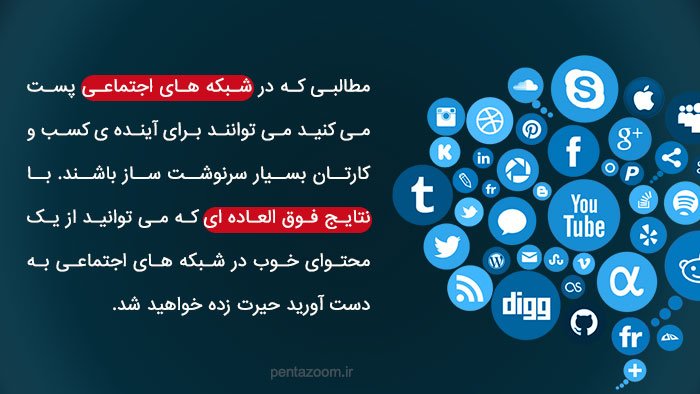 مطالبی که در شبکه های اجتماعی پست می کنید می توانند برای آینده ی کسب و کارتان بسیار سرنوشت ساز باشند. باید بتوانید محتواهایی تولید کنید که در حین آموزنده بودن، گیرا و جالب توجه هم باشند و بتوانند مخاطبین زیادی را برای شما جمع آوری کنند. با نتایج فوق العاده ای که می توانید از یک محتوای خوب در شبکه های اجتماعی به دست آورید حیرت زده خواهید شد.