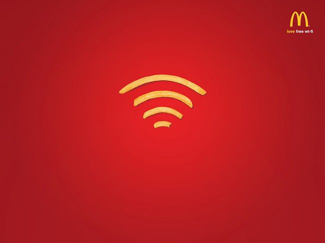 برند مک دونالد در زمینه فست فود را دست کن تمام مردم می شناشند !!! این برند موفق چند وقتی است که Wifi را به قابلیت های خود اضافه کرده و ببینید چه قدر ساده و شیک آن را به تصویر کشیده است . برندی که توانسته سطح خدمت خود را در روز به شصت و چهار میلیون رسید برساند قطعا بیش تر از یک برند عادی است و در واقع برای دیگر برند ها الگویی رفتاریست.
