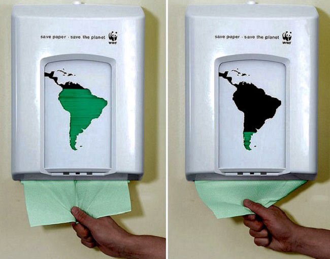 همه ما می دانیم که در صنایع امروزی از درخت ها برای تولید مواردی چون : دکوراسیون خانه ها ، کاغذ ، دستمال ، و .. استفاده می شود . اگر بی رویه از این درخت ها استفاده سود بر شرایط محیطی کره زمین تاثیر بسیار منفی می گذارد . ببینیم این برند چگونه به تصویر کشیده است .