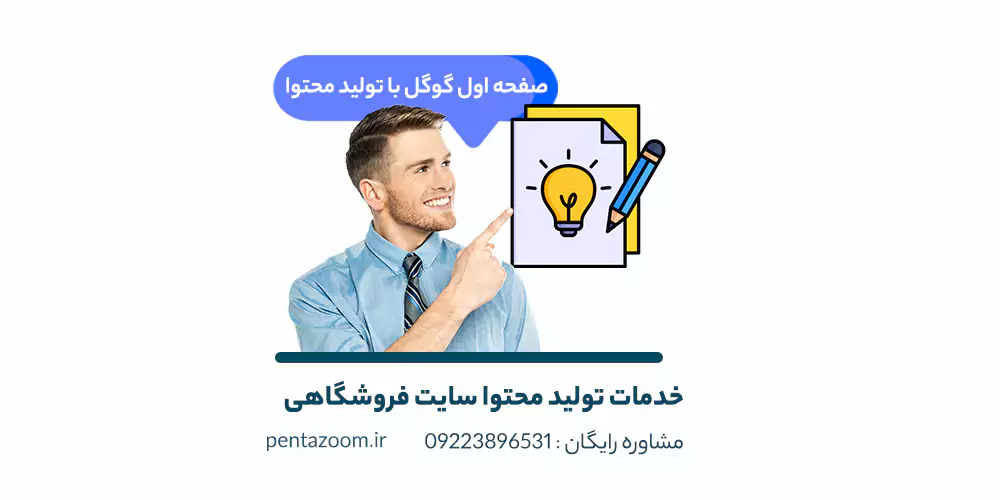 با سفارش تولید محتوا سئو شده شانس دیده شدن در صفحه اول گوگل را دارید. تولید محتوا سایت در پنتازوم با رعایت اصول مورد تایید گوگل انجام می شود. با تولید محتوا اصولی و بازاریابی محتوا می توانید فروش سایت را بالاتر ببرید. شما می توانید از خدمات تولید محتوا متنی ما استفاده کنید و سفارش خود را در فایل ورد تحویل بگیرید. در صورت نیاز می توانیم محتوا را در سایت شما بارگزاری کنیم. برای مشاوره رایگان سفارش تولید محتوا بر اساس SEO شماره خود را در کادر زیر وارد کنید.